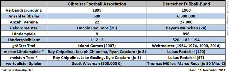 Und tatsächlich ergab die Auslosung der EM-Qualifikationsgruppen, dass Gibraltar auf Deutschland trifft … wenngleich auf Umwegen. Zunächst war Gibraltar ausgerechnet der spanischen Gruppe zugelost worden. Da sich Spanien aber nicht die Blöße geben will, offiziell gegen Gibraltar anzutreten, beschied die UEFA schon im Vorfeld, dass die beiden nicht gegeneinander spielen. Gibraltar geht somit als der 91. Kontrahent in die über 100-jährige Länderspielgeschichte des DFB ein. Es ist der kleinste Gegner, auf den der DFB je traf. Selbst San Marino, die Färöer und Liechtenstein weisen mehr als die 30.000 Einwohner auf, über die Gibraltar verfügt. Das wäre so, also ob Oer-Erkenschwick plötzlich eine Nationalelf aufbieten würde. Doch in Gibraltar spielt der Fußball eine nicht zu unterschätzende Rolle. Das einzige britische Überseegebiet in Europa darf immerhin zwei Ligen mit 22 Teams ihr Eigen nennen. Auf so viele Klubs kommen Liechtenstein und San Marino gerade einmal zusammen. Dennoch wird Gibraltar dem amtierenden Weltmeister sportlich keine Rätsel aufgeben. Die Novizen gerieten schon gegen Irland und Polen mit jeweils 0:7 unter die Räder. Kein Wunder bei einem Team, das kaum professionelle Kicker aufbieten kann.