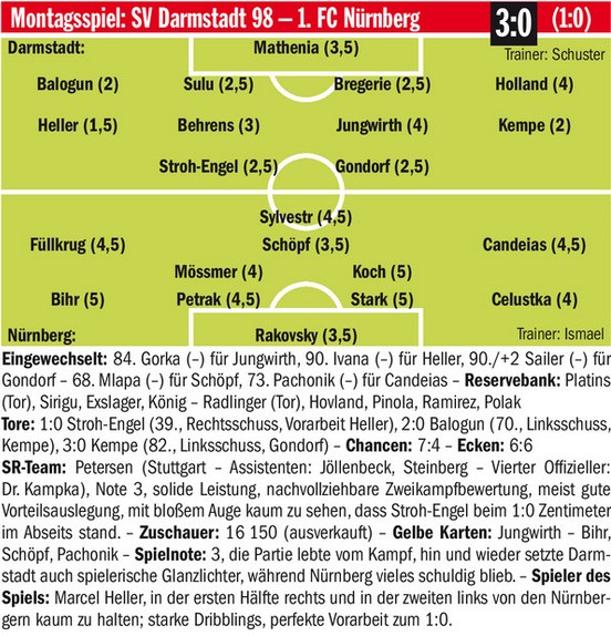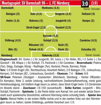 Wie das Spiel gegen den FCN verlaufen wäre, wenn Tobi Kempes Geschoss nach dem Ausgleich nicht an den Pfosten geklatsch wäre, ist im Endeffekt müßig zu diskutieren. Zu konfus ist die Darbietung des SVD-Defensivverbunds, als dass eine Führung ein Ruhekissen wäre. So kam, wie so oft in letzter Zeit, der Kontrahent mit konsequenten Offensivaktionen vor das Tor der Lilien und zog davon. Wie schon gegen Heidenheim, sehen die 98er am Montag ein ums andere Mal schlecht aus, wenn der Kontrahent schnell umschaltet. Keine gute Grundlage vor den Spielen gegen die offensivstarken Teams aus Düsseldorf und Kiel.