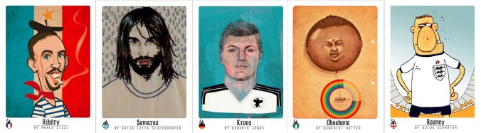 Neben den neuen tollen Illustrationen werden wir mit einer Neuheit aufwarten können. Wir haben 48 Grafikdesigner engagiert, die für alle 48 Vorrundenspiele ein sogenanntes Matchday Poster –also ein Plakat für dieses Spiel – machen werden. Diese Plakate kommen auch als Sticker ins Heft und stellen so einen großartigen grafischen Spielplan dar. Sie öffnen das Projekt zugleich in eine neue Richtung, die des Grafikdesigns. Wir werden in Zusammenarbeit mit dem Plakatfestival Weltformat die Plakate in Ausstellungen präsentieren, am liebsten auf der ganzen Welt.