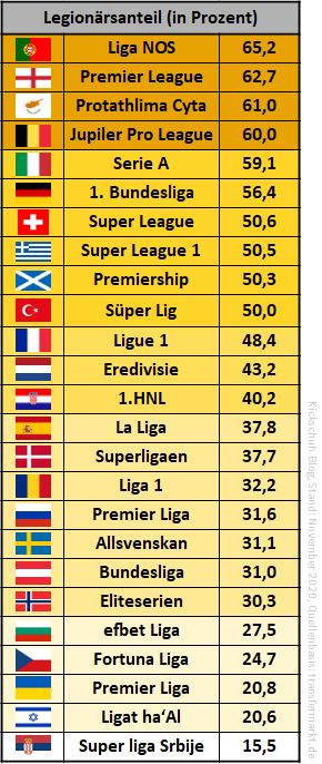 Pingback: Legionäre in Europa – die Statistiken 2020 (II) | Kickschuh.Blog
