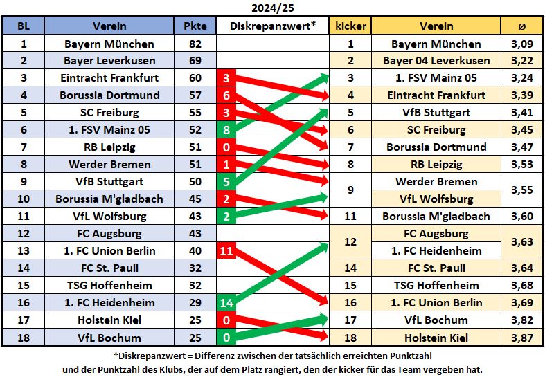 Das soll es gewesen sein, was den neuerlichen Vergleich der Abschlusstabellen mit der Notengebung des kicker angeht. Es bleibt letztlich eine nette Spielerei, mit dem ein oder anderen Funken Wahrheit.